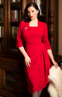The beauty of this dress is how it flatters the figure whilst still being demure. We've used ruching at the hip and on bustline to create shape and interest whilst the ruching at the shoulders gives a strong 1940s silhouette.